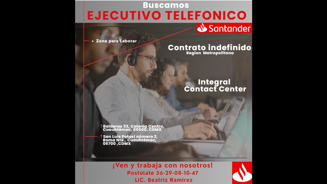 Santander Asesor Telefonico - Medio tiempo y Tiempo completo